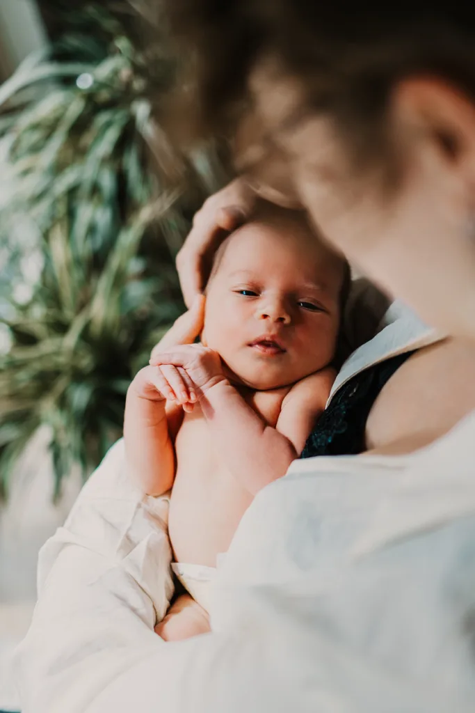 Niet lang daarna stuurden ze mij een berichtje om een newbornshoot te plannen. En juist in die eerste dagen is thuis blijven zo fijn. Alles is binnen handbereik. Geen haast, geen prikkels, geen “moeten”.