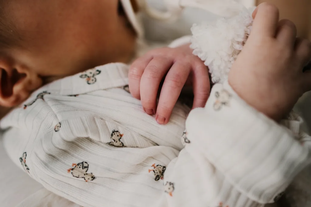 Ik heb vaak maar een paar hoekjes nodig. Meestal fotografeer ik in de ouderslaapkamer en in de woon- of babykamer. Meer is niet nodig. Juist daarin ontstaat een verhaal dat helemaal van jullie is — en van niemand anders.
